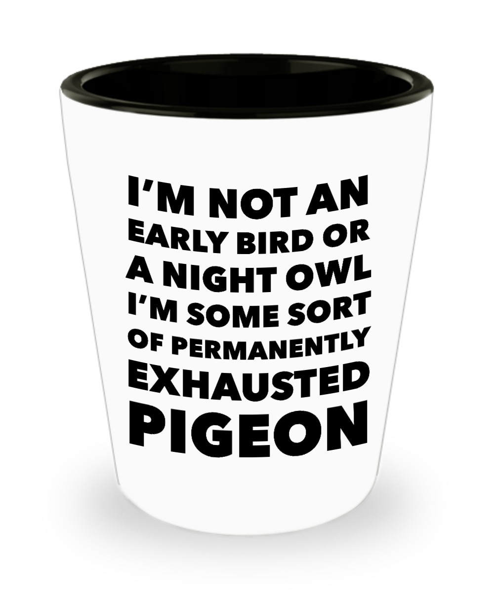 Permanently Exhausted Pigeon I'm Not an Early Bird or a Night Owl I'm Some Sort of Funny Shot Glass