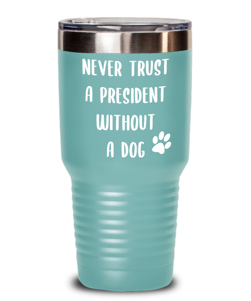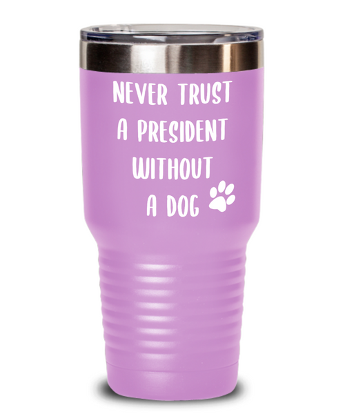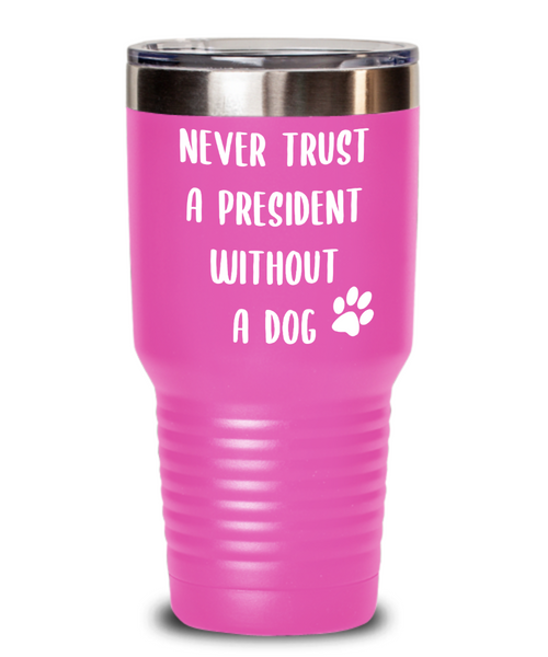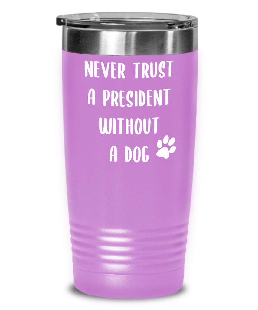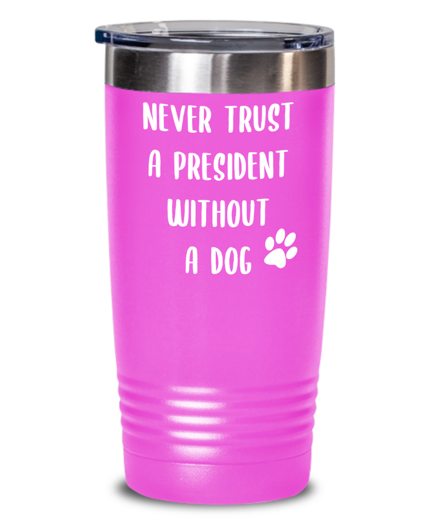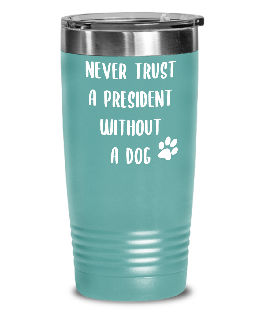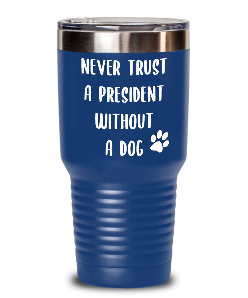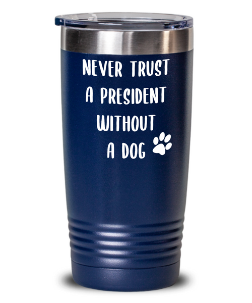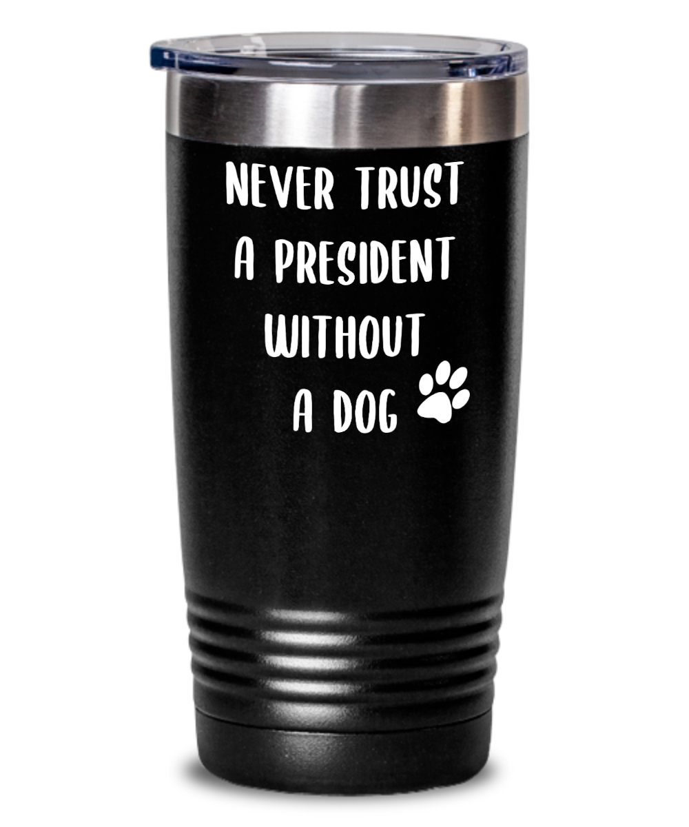 Political Gag Gift Tumbler Never Trust a President Without a Dog Mug Funny Insulated Travel Coffee Cup BPA Free