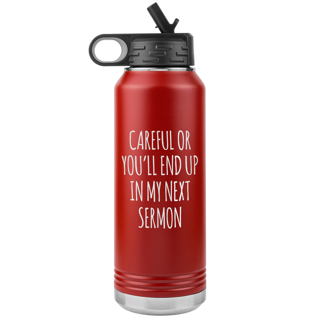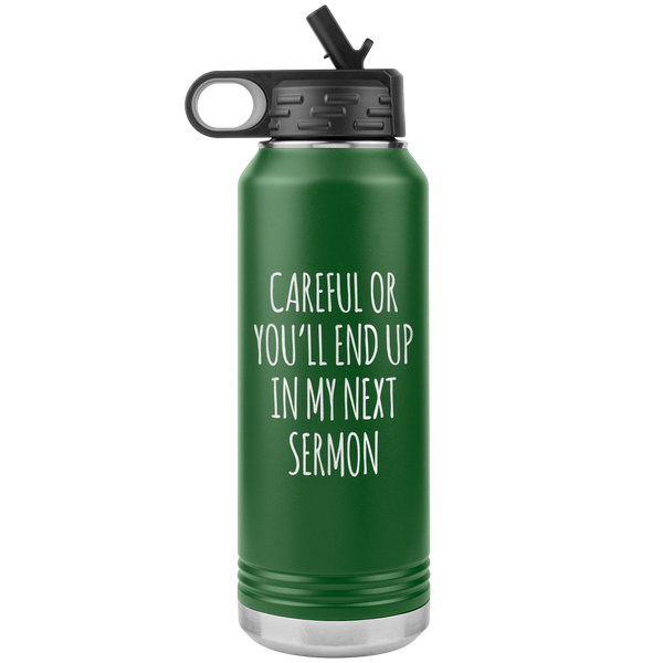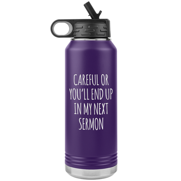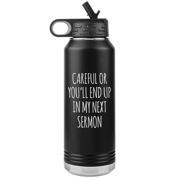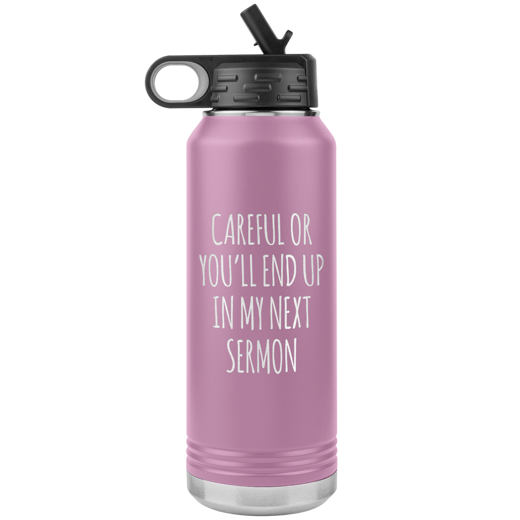 Preacher Gift Careful or You'll End Up in My Sermon Funny Minister Pastor Missionary Insulated Water Bottle 32oz BPA Free