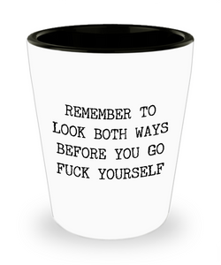 Profanity Shot Glass Remember to Look Both Ways Funny Rude Profane Shot Glasses