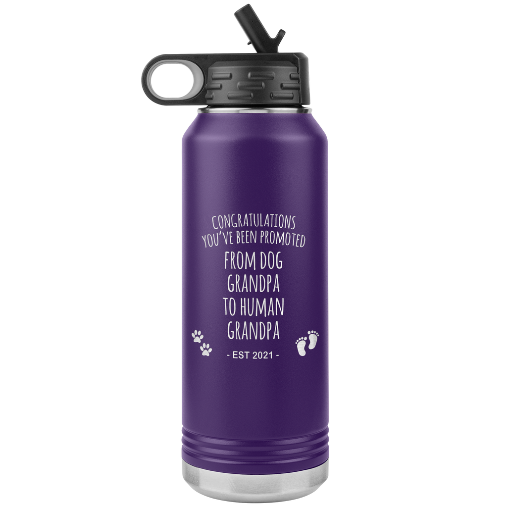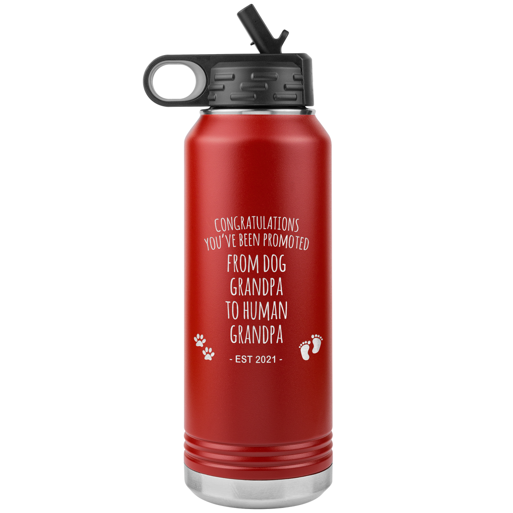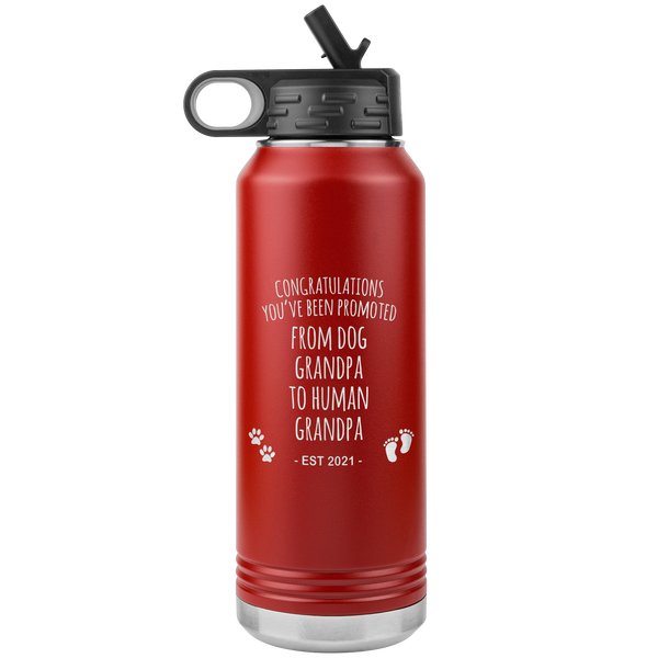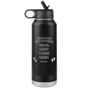 Promoted From Dog Grandpa To Human Grandpa Est 2021 Pregnancy Reveal Announcement New Baby Gift Insulated Water Bottle 32oz BPA Free