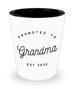 Promoted to Grandma EST 2020 Shot Glass Pregnancy Reveal New Grandparents Grandchild Birth Announcement