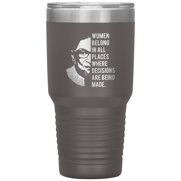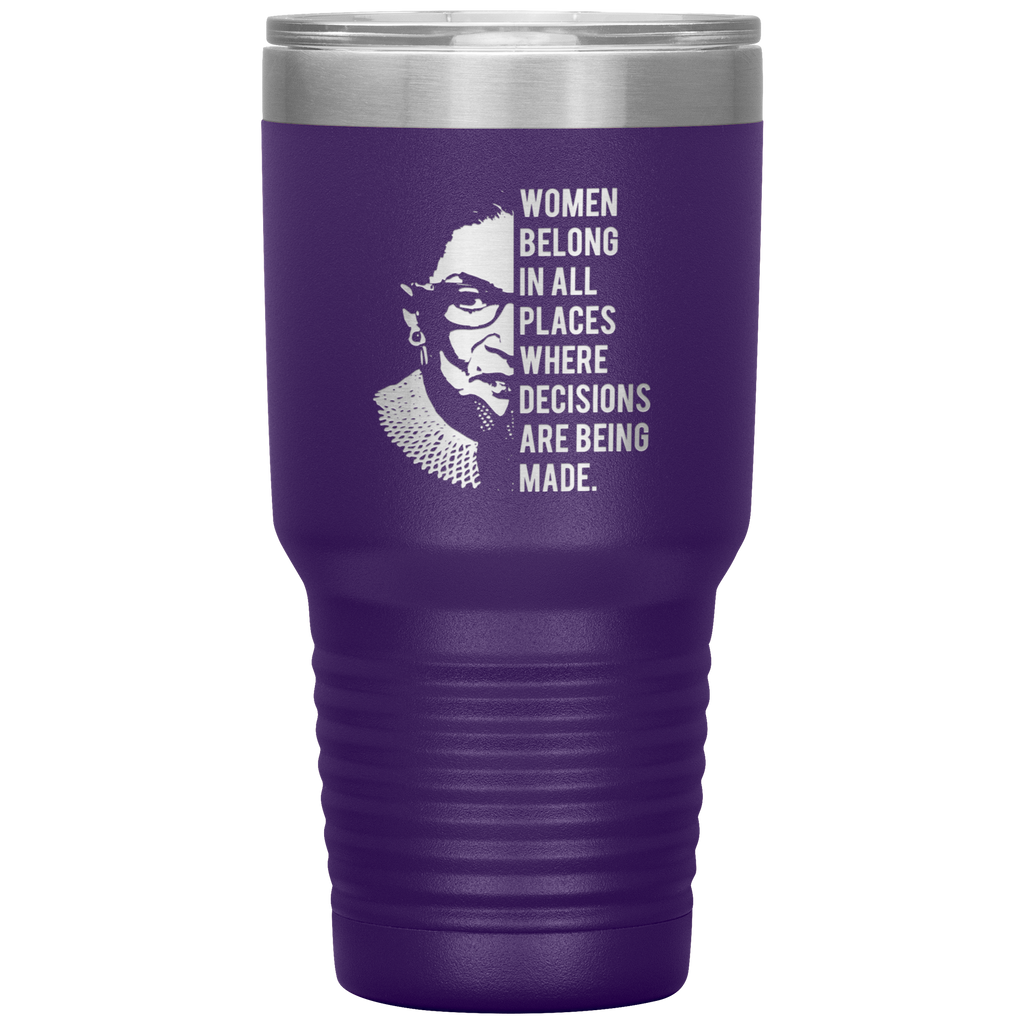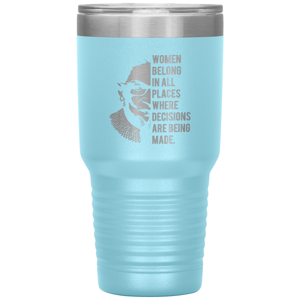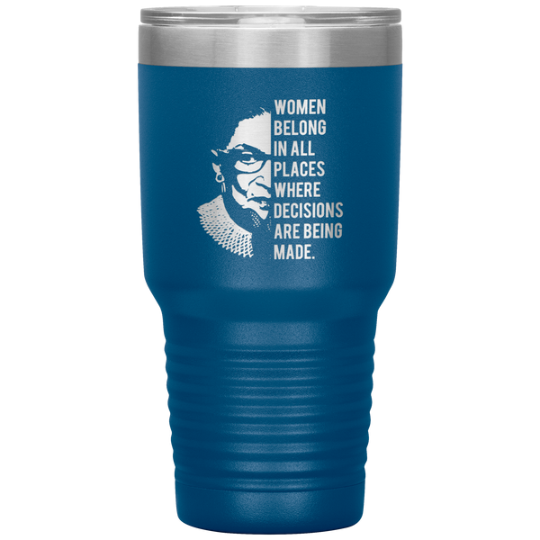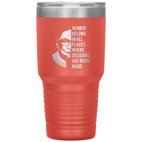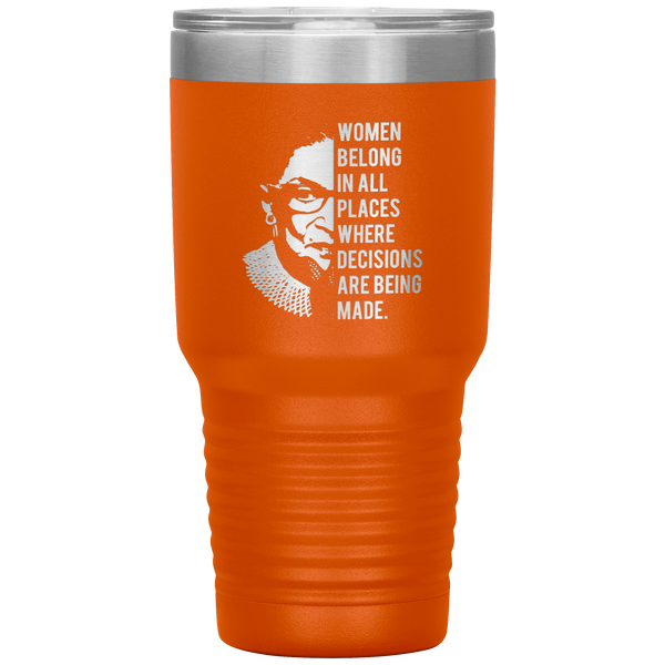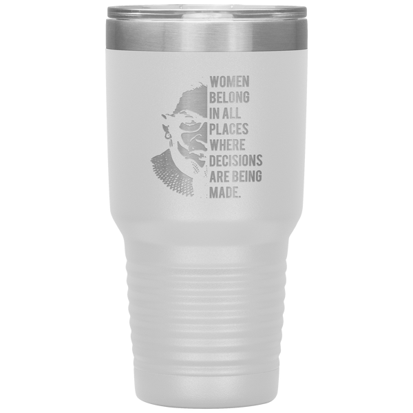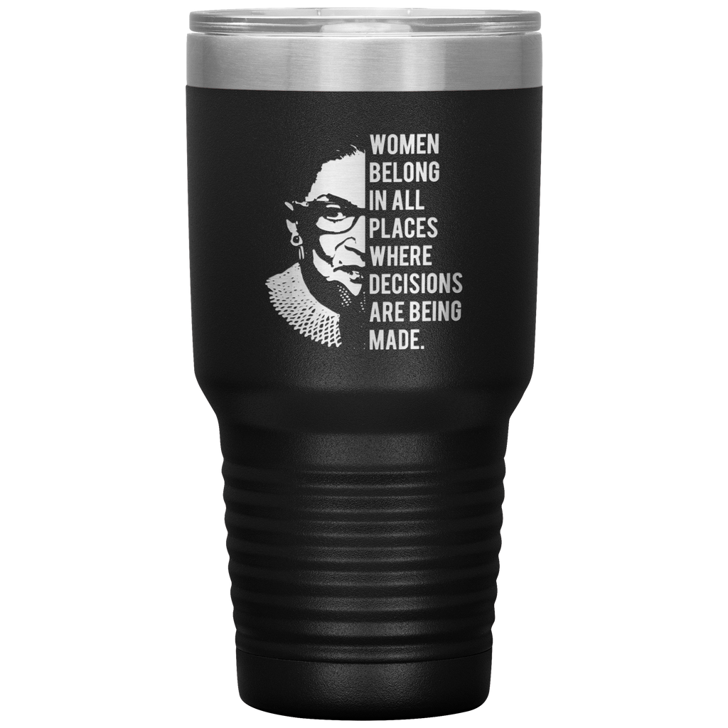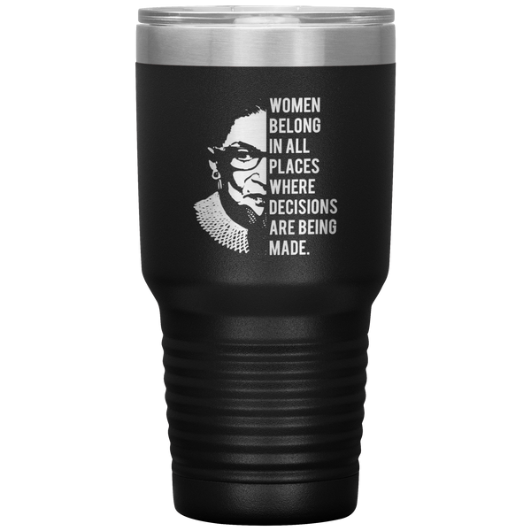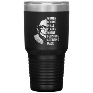Ruth Bader Ginsburg Tumbler Notorious RBG Women Belong In All Places Where Decisions Are Being Made Feminist Mug Insulated Hot Cold Travel Coffee Cup 30oz BPA Free