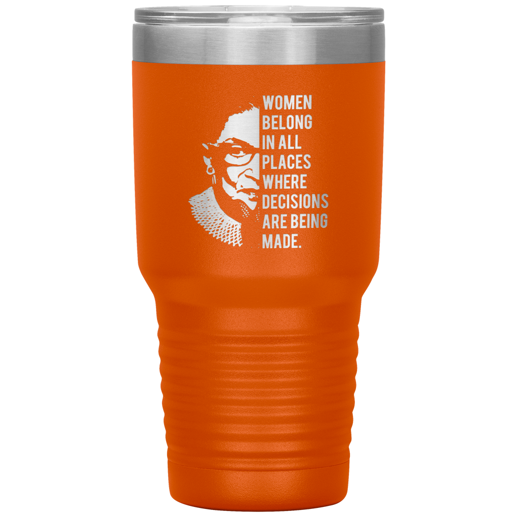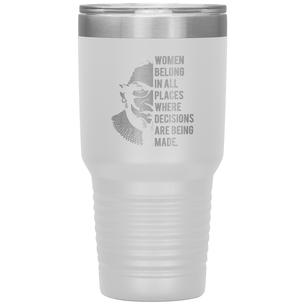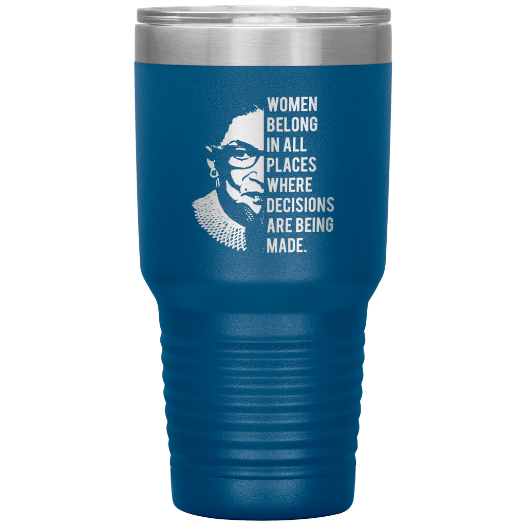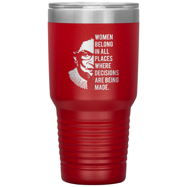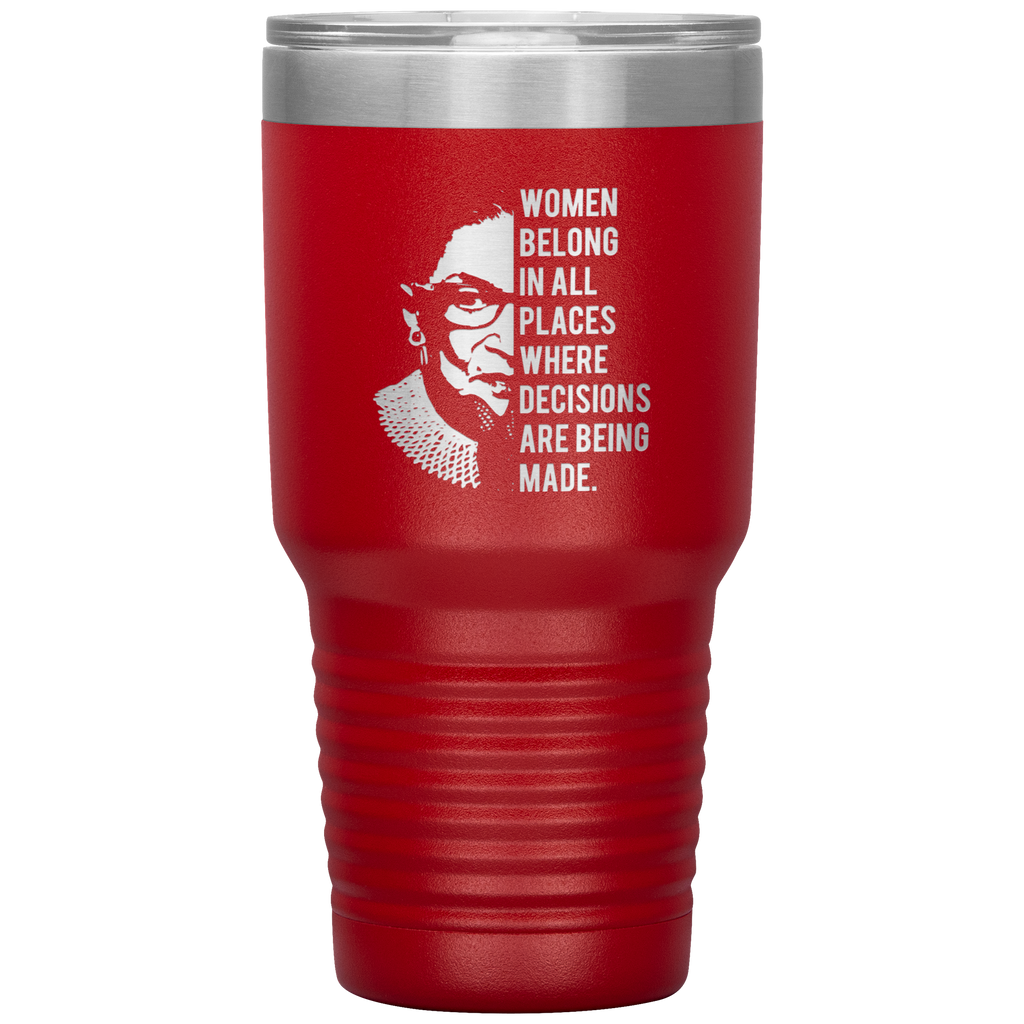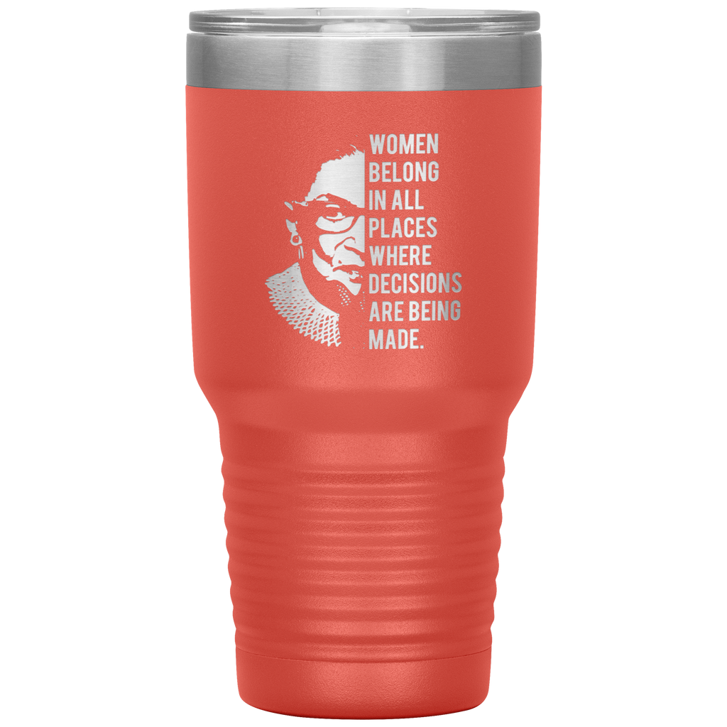 Ruth Bader Ginsburg Tumbler Notorious RBG Women Belong In All Places Where Decisions Are Being Made Feminist Mug Insulated Hot Cold Travel Coffee Cup 30oz BPA Free