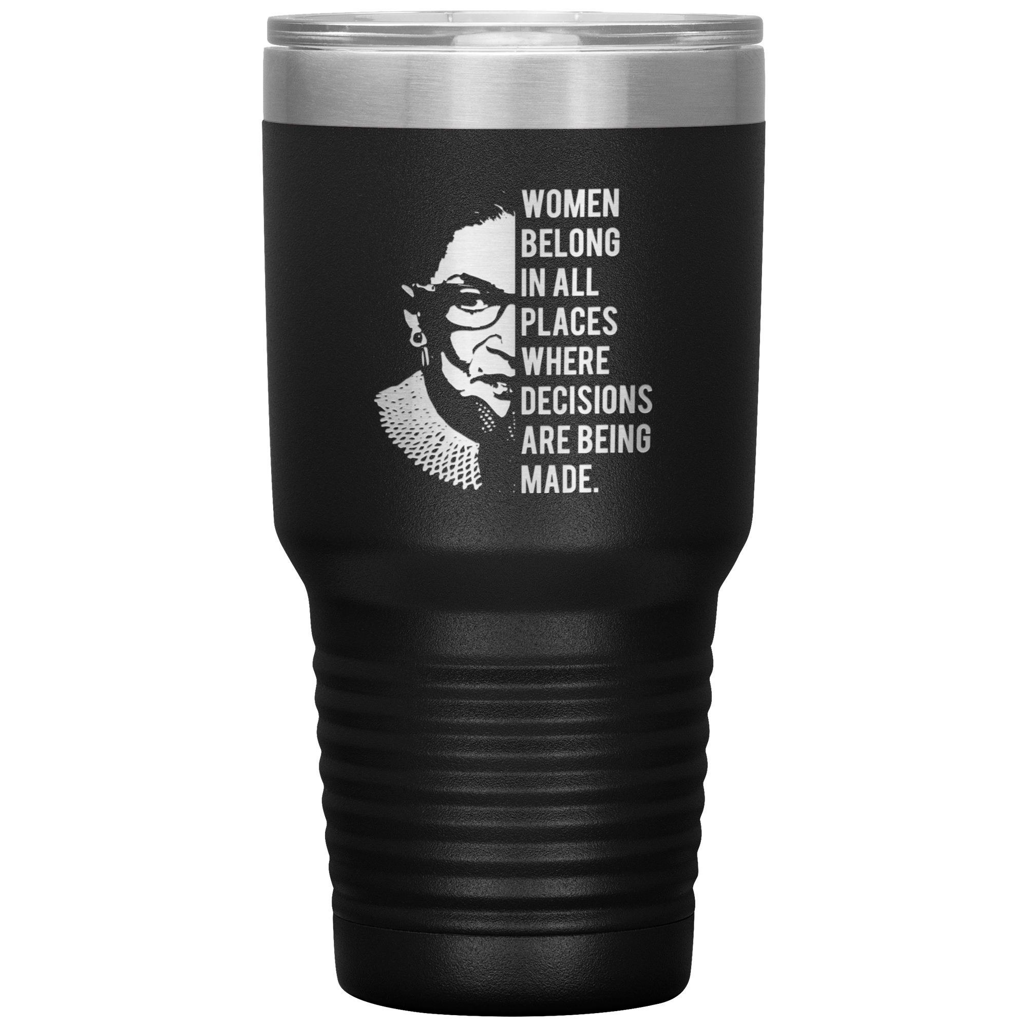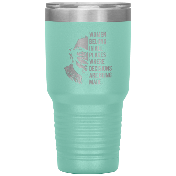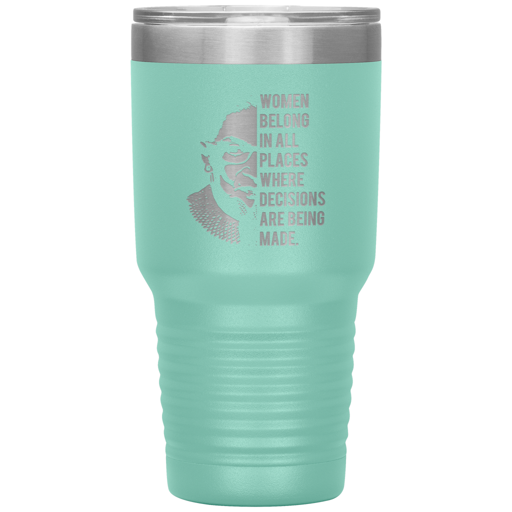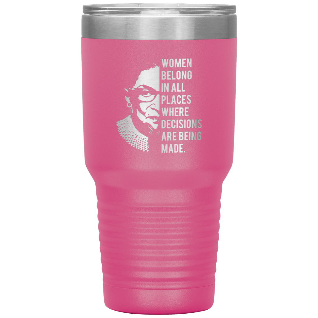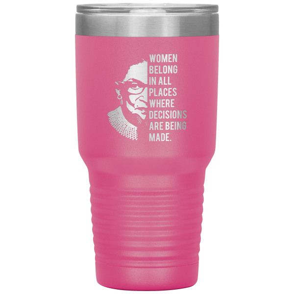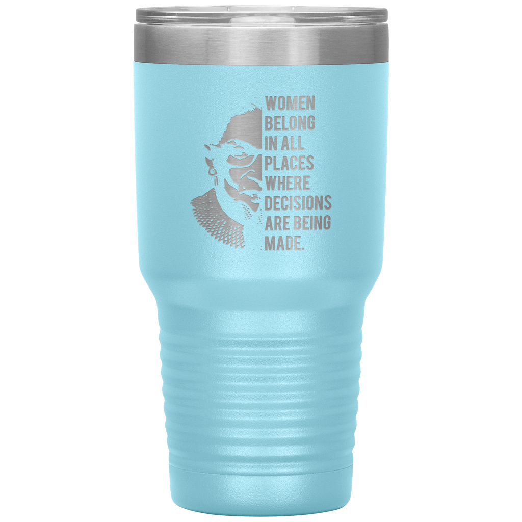 Ruth Bader Ginsburg Tumbler Notorious RBG Women Belong In All Places Where Decisions Are Being Made Feminist Mug Insulated Hot Cold Travel Coffee Cup 30oz BPA Free