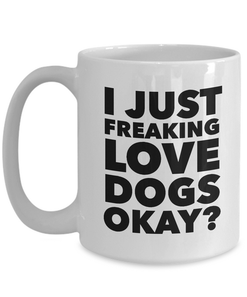 Funny Dog Lover Coffee Mug - I Just Freaking Love Dogs Okay? Ceramic Coffee Cup