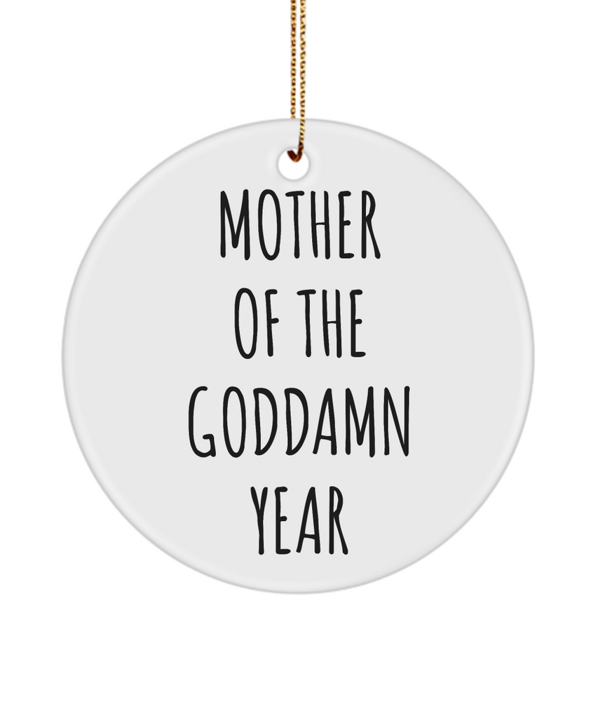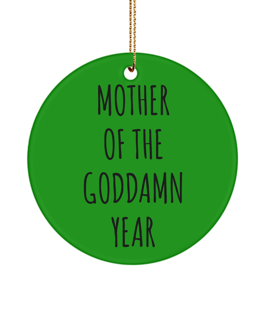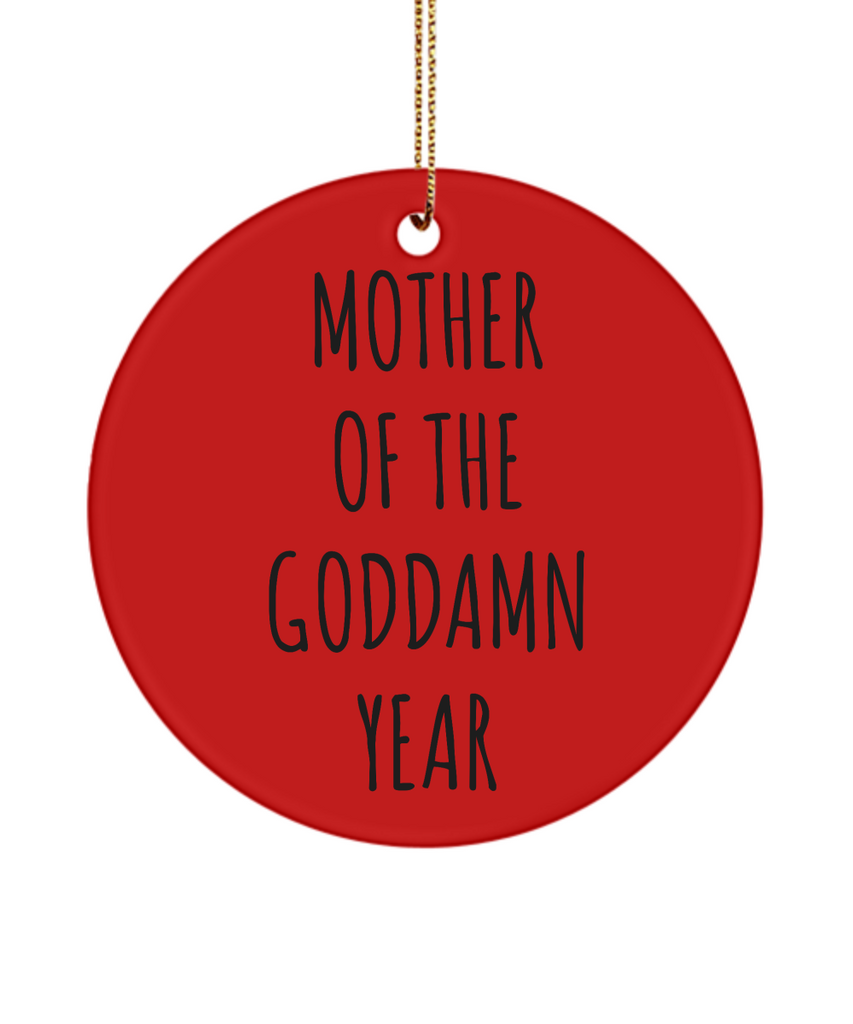 Sarcastic Mom Present Mother Of The Goddamn Year Ceramic Christmas Tree Ornament