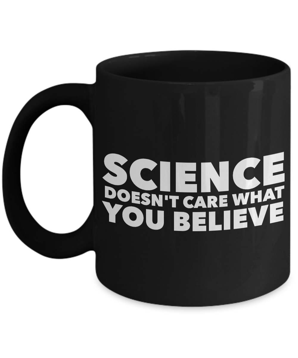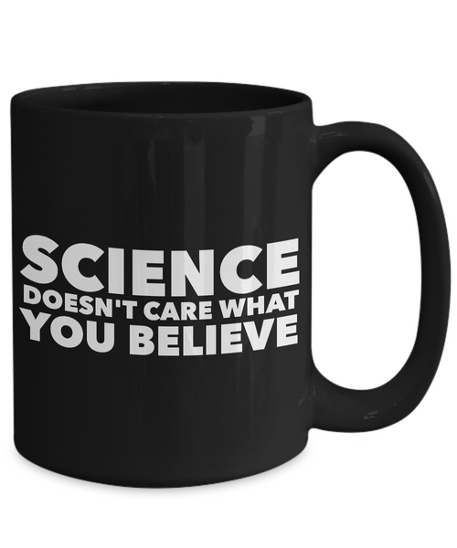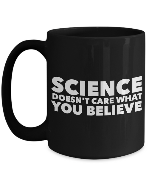 Science Coffee Mug - Science Doesn't Care What You Believe Black Coffee Cup