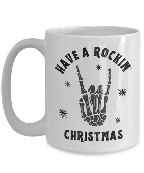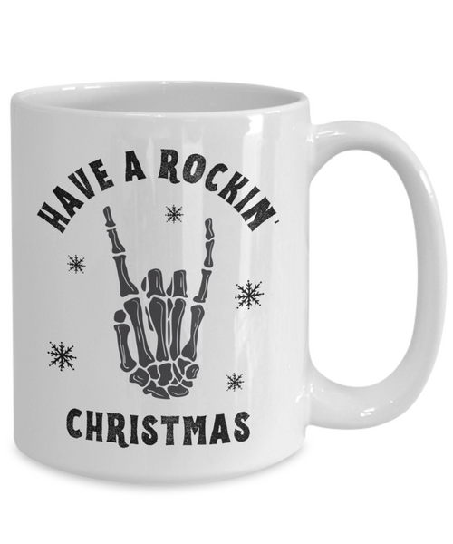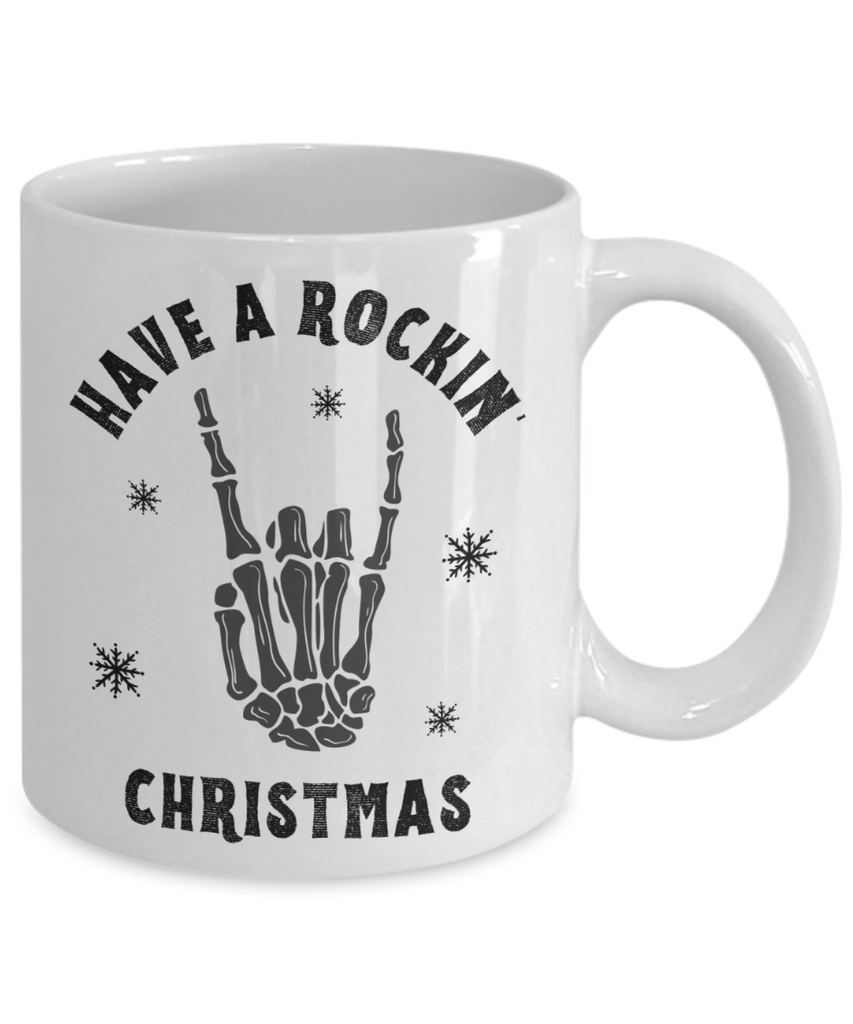 Skeleton Mug, Skeleton Coffee Cup, Christmas Skeleton, Dancing Skeleton, Spooky Christmas, Creepy Christmas, Goth Christmas, Have a Rockin' Christmas