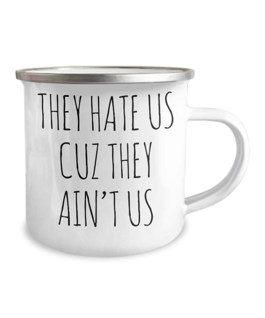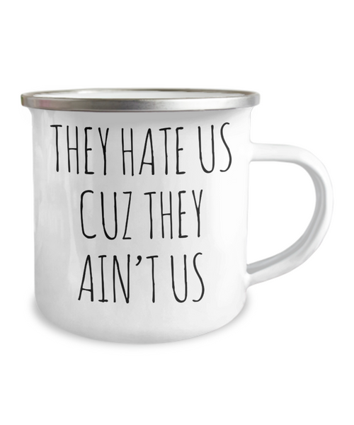 Social Media Influencer Gift They Hate Us Cuz They Ain't Us Mug Funny Metal Camping Coffee Cup