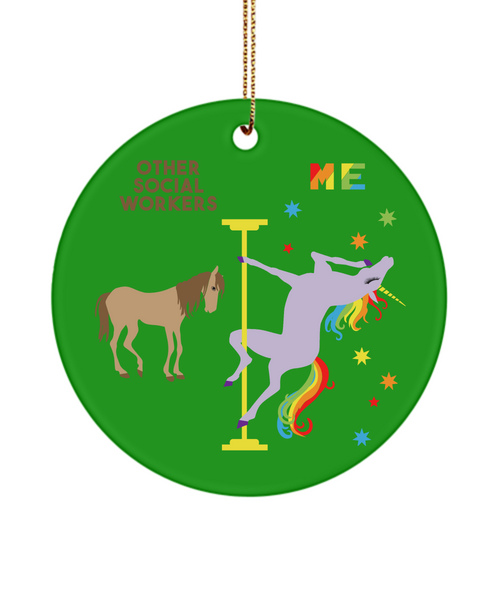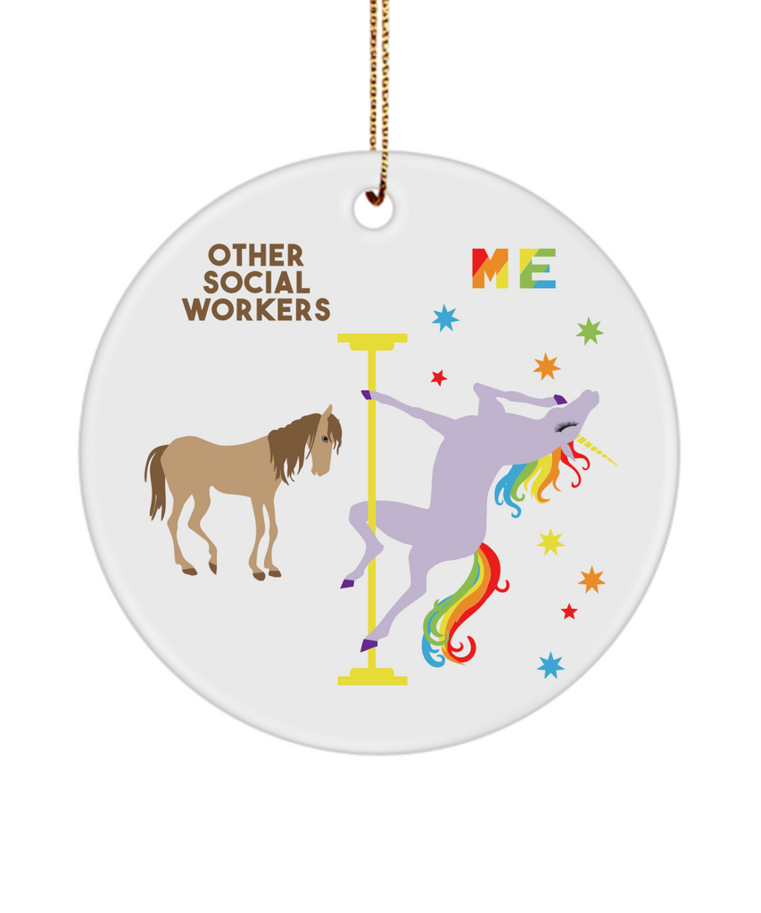 Social Worker Present Unicorn Ceramic Christmas Tree Ornament