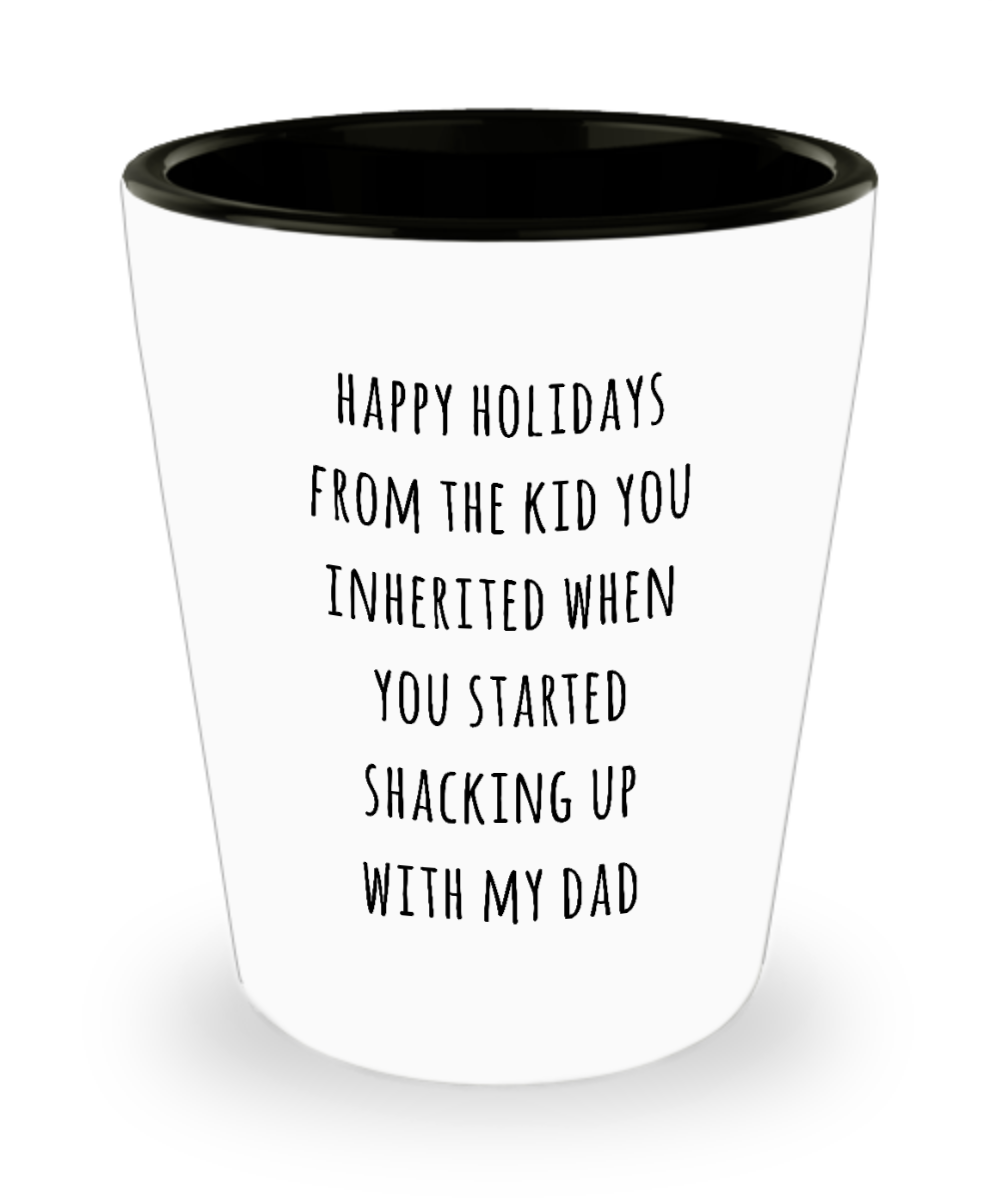 Stepmom Stepmother Gift for Stepmoms Funny Happy Holidays from the Kid You Inherited When You Started Shacking with My Dad Ceramic Shot Glass