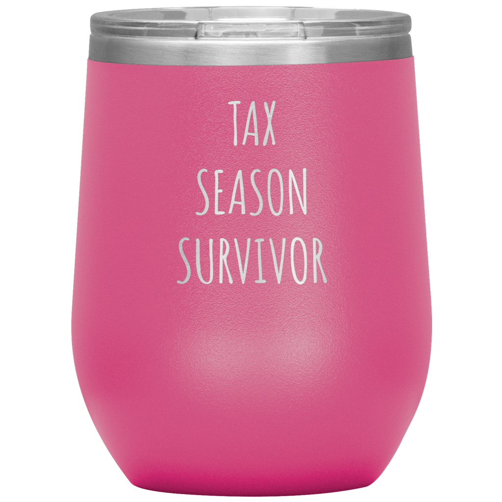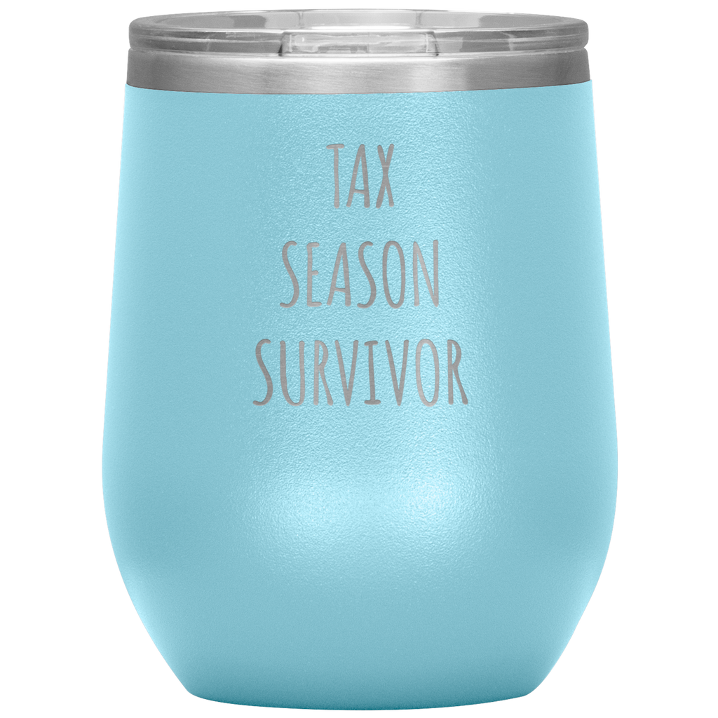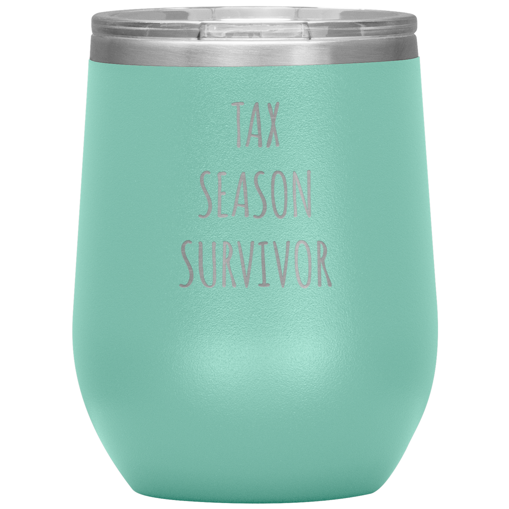 Tax Season Survivor Accountant Tax Preparer Taxes Accounting Stemless Insulated Wine Tumbler BPA Free 12oz