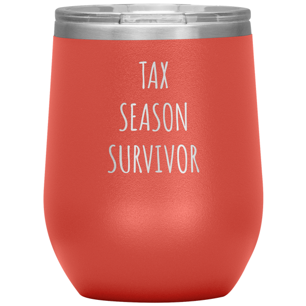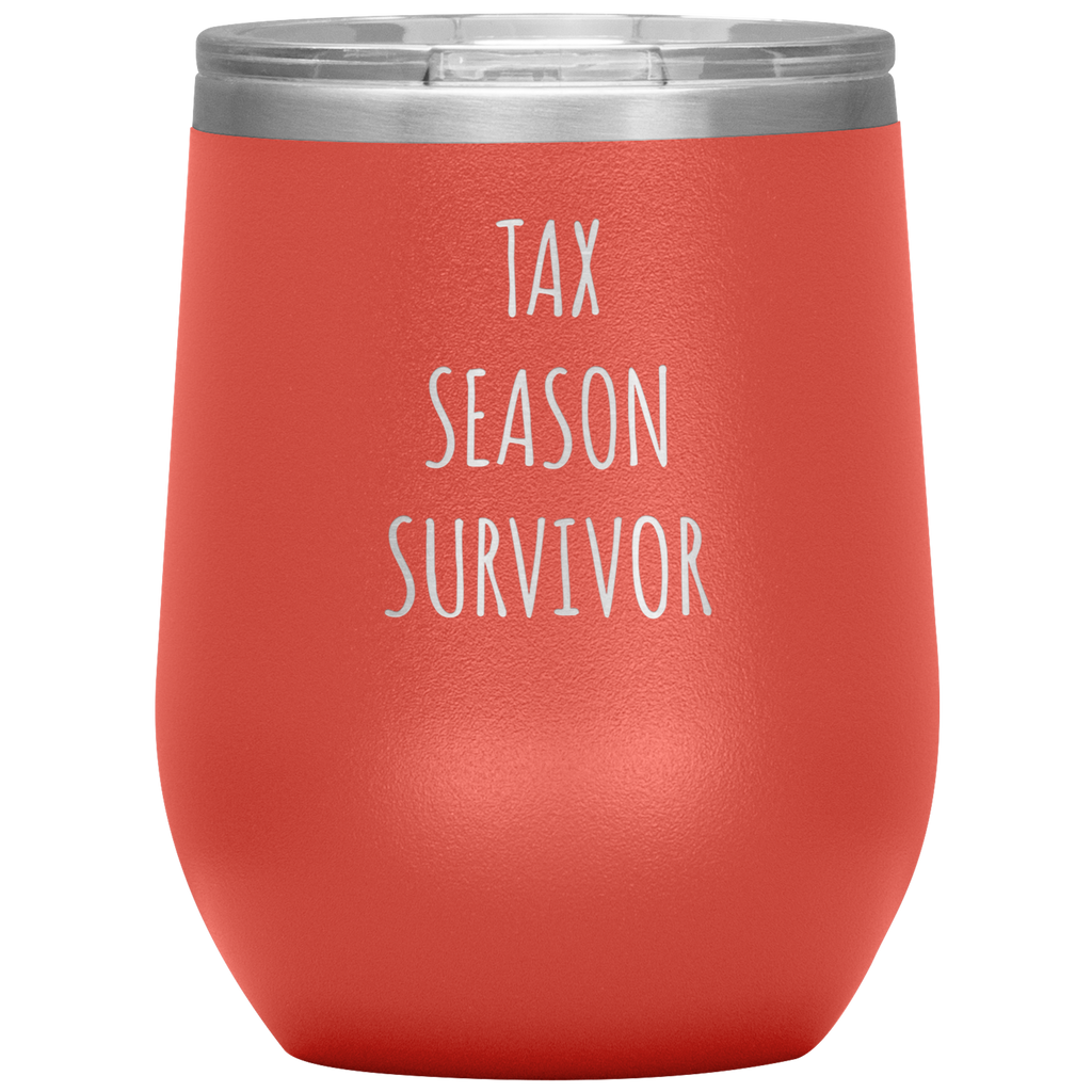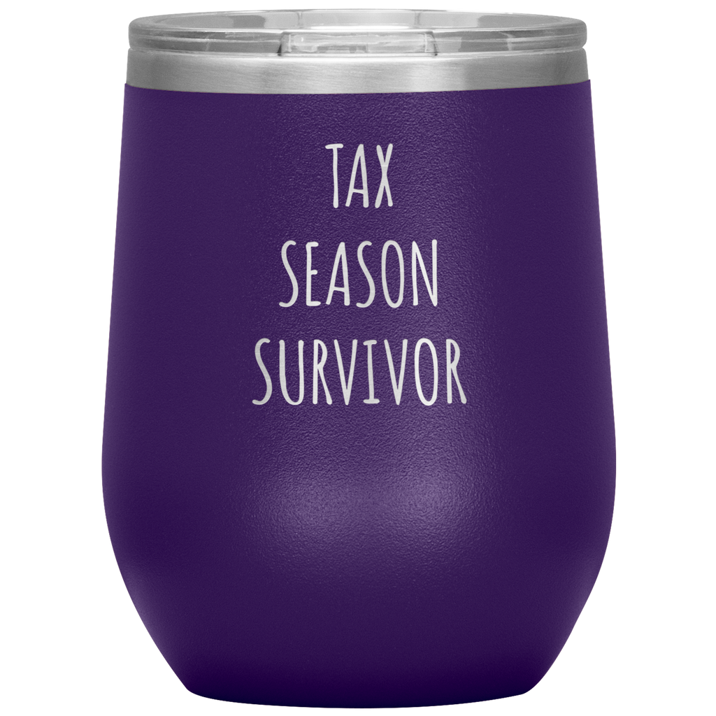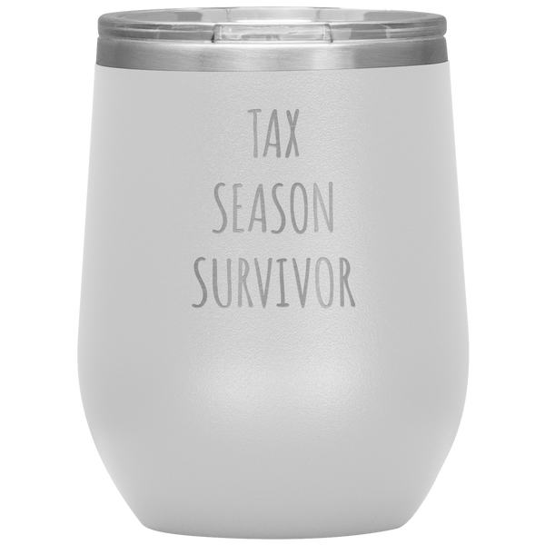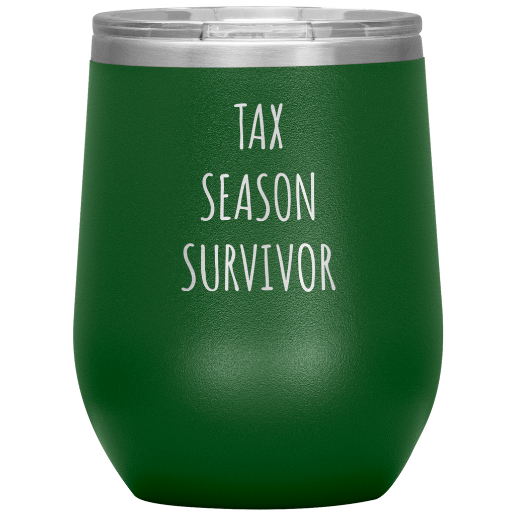 Tax Season Survivor Accountant Tax Preparer Taxes Accounting Stemless Insulated Wine Tumbler BPA Free 12oz