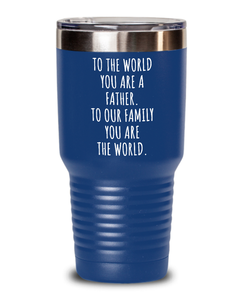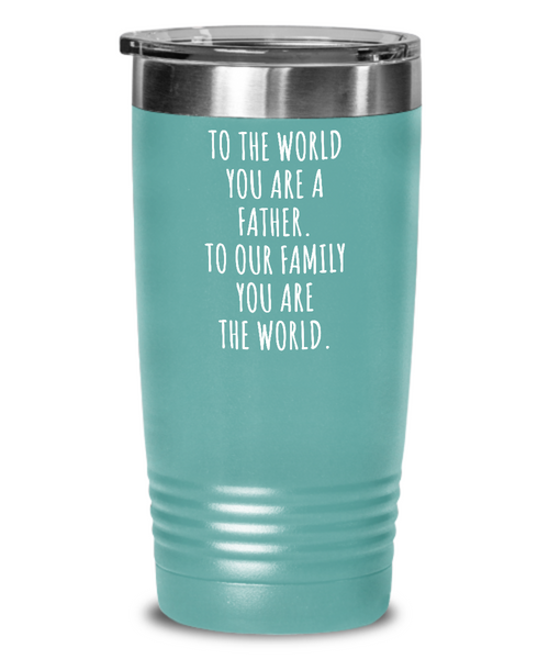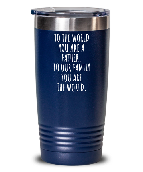 To The World You Are A Father. To Our Family You Are The World. Fathers Day Gift From Wife, Daughter, Son To Our Family You Are The World Insulated Drink Tumbler Travel Cup Funny Gift