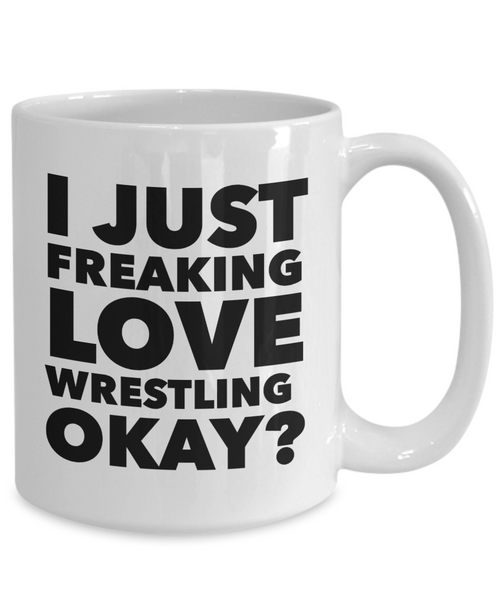 Wrestler Gifts I Just Freaking Love Wrestling Okay Funny Mug Ceramic Coffee Cup